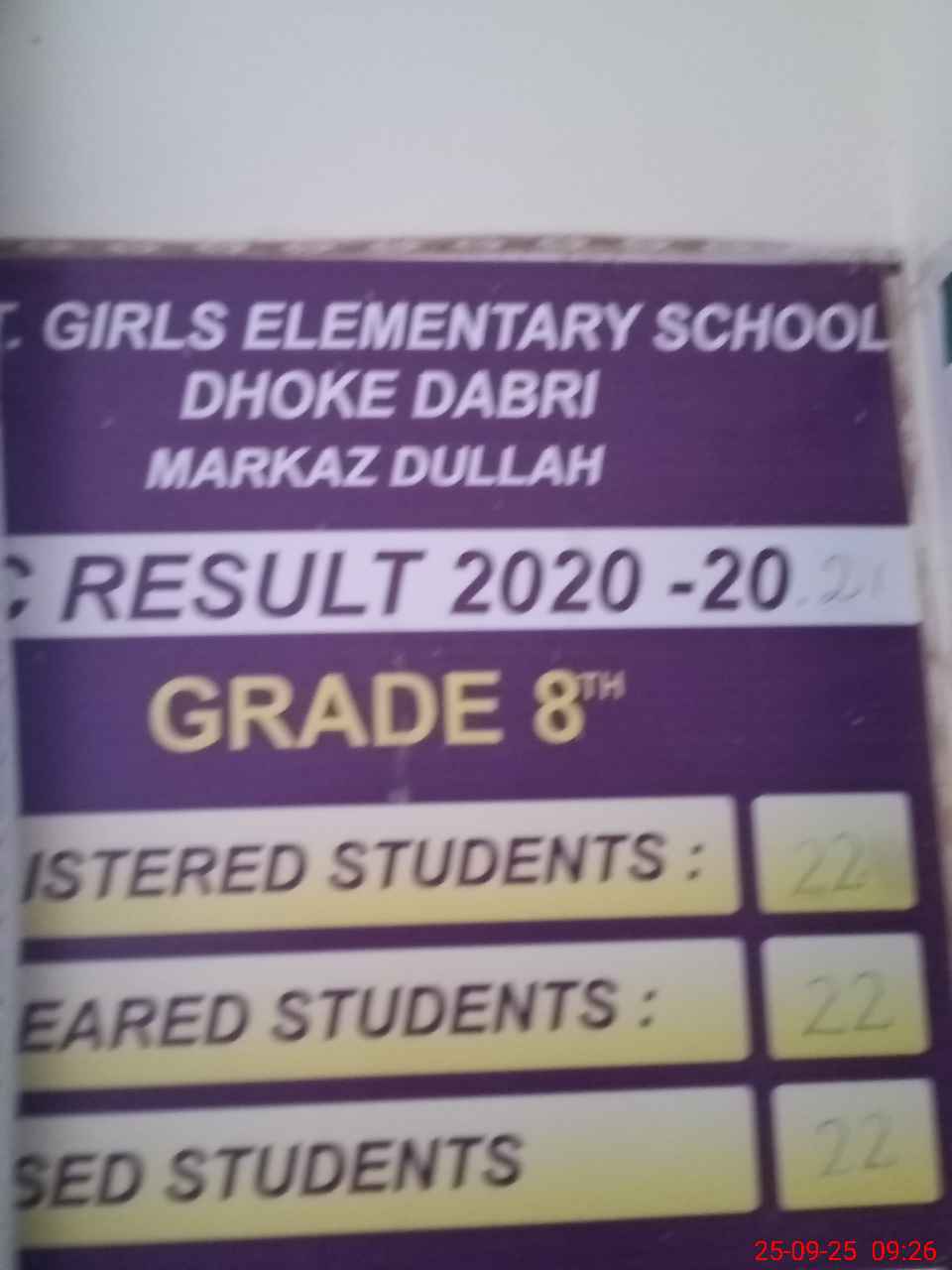 | District: CHAKWAL | Tehsil: CHAKWAL | Markaz: DULLAH-FEMALE | Level: Middle | |