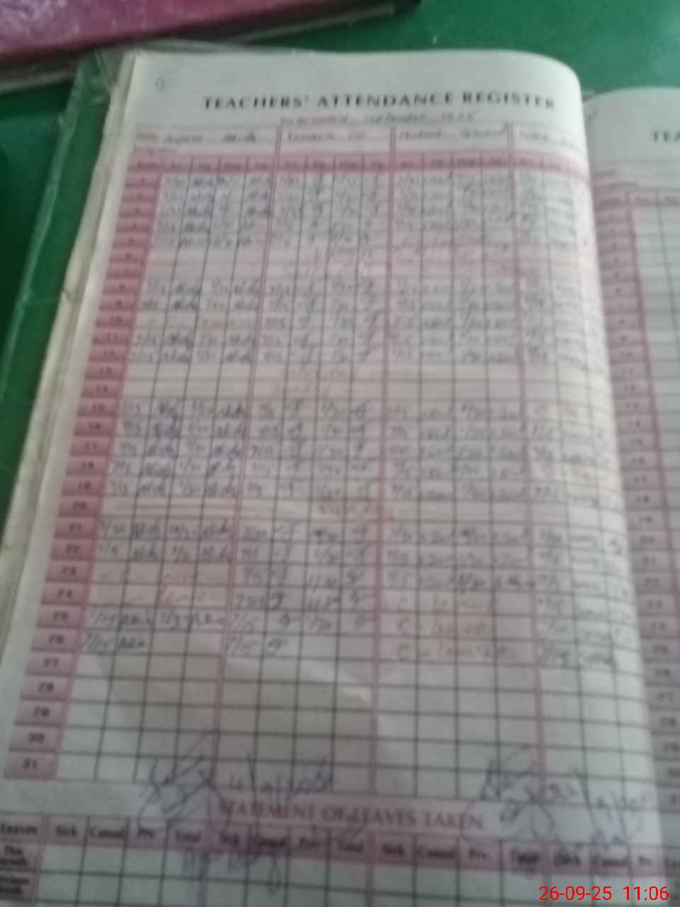 Leave Type | Remarks for Today (Leave,Training, Exam,Absent,Late, Other Duty) |