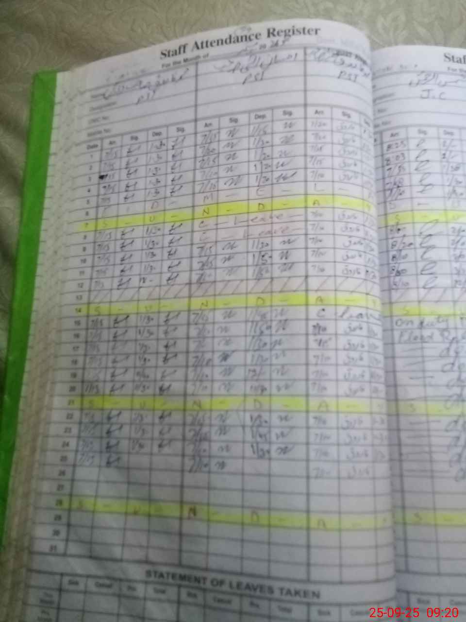 | Leave | Duty | Absent | Maternity | Medical | Ex- Pak |