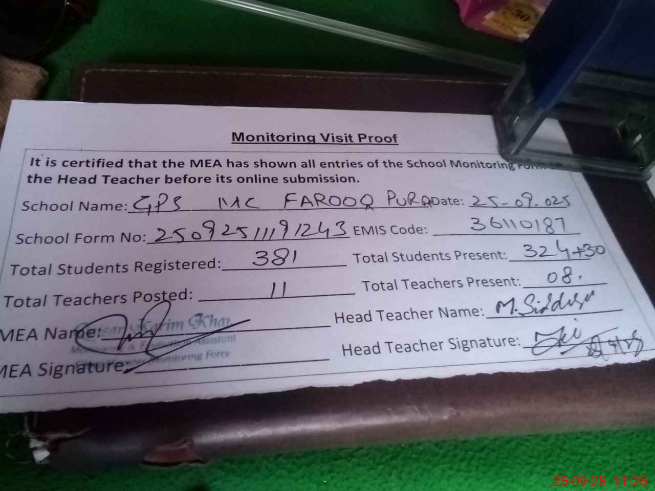 | EMIS Code: 36110187 | Name of School: GPS MC FAROOQ PURA MULTAN | |||