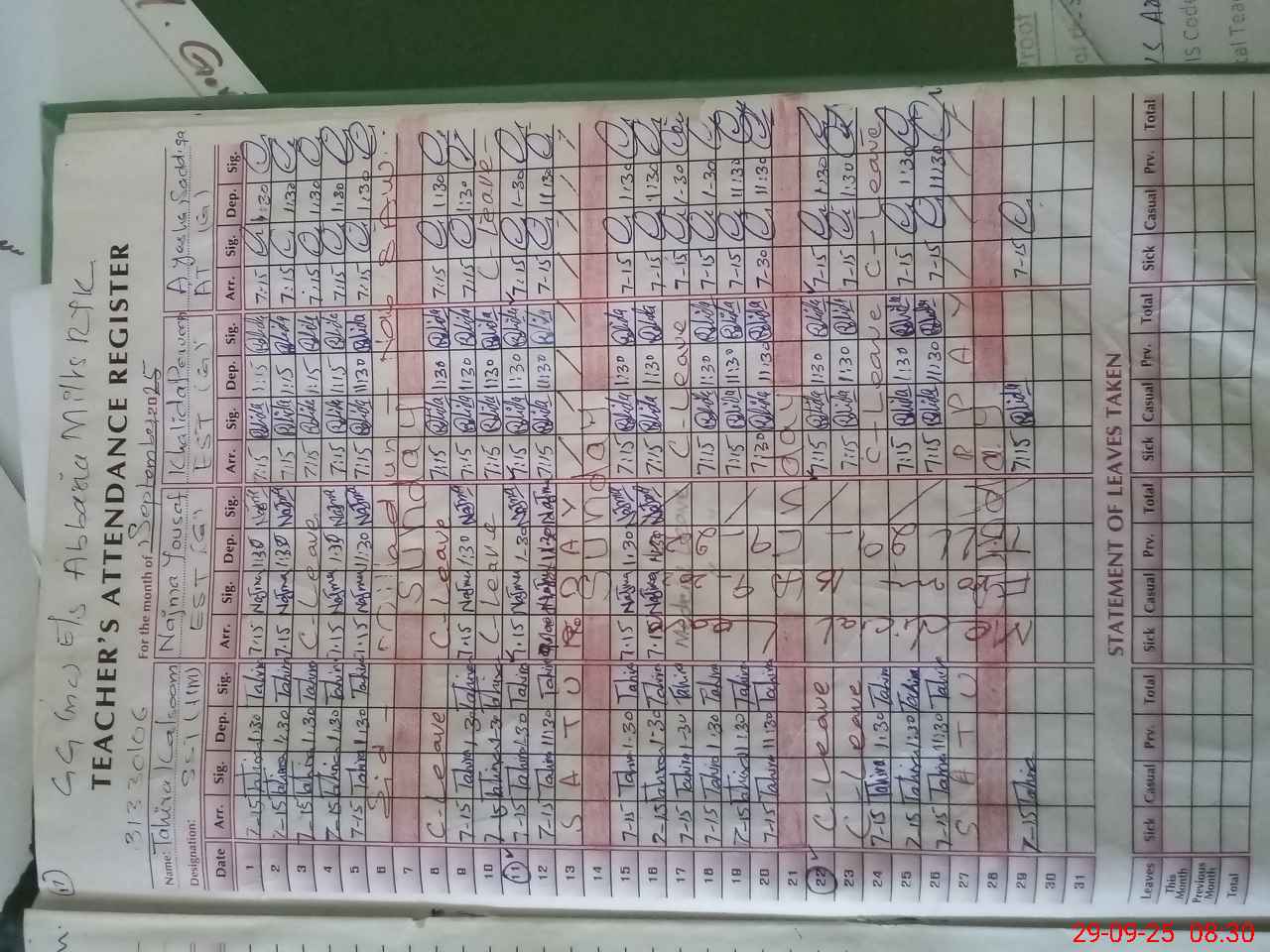 | 31**** | Sa**** Sa**** | PST | Regular | 0 | 0 | 0 | 0 | 0 | 0 | 0 | 0 | 0 | Casual |