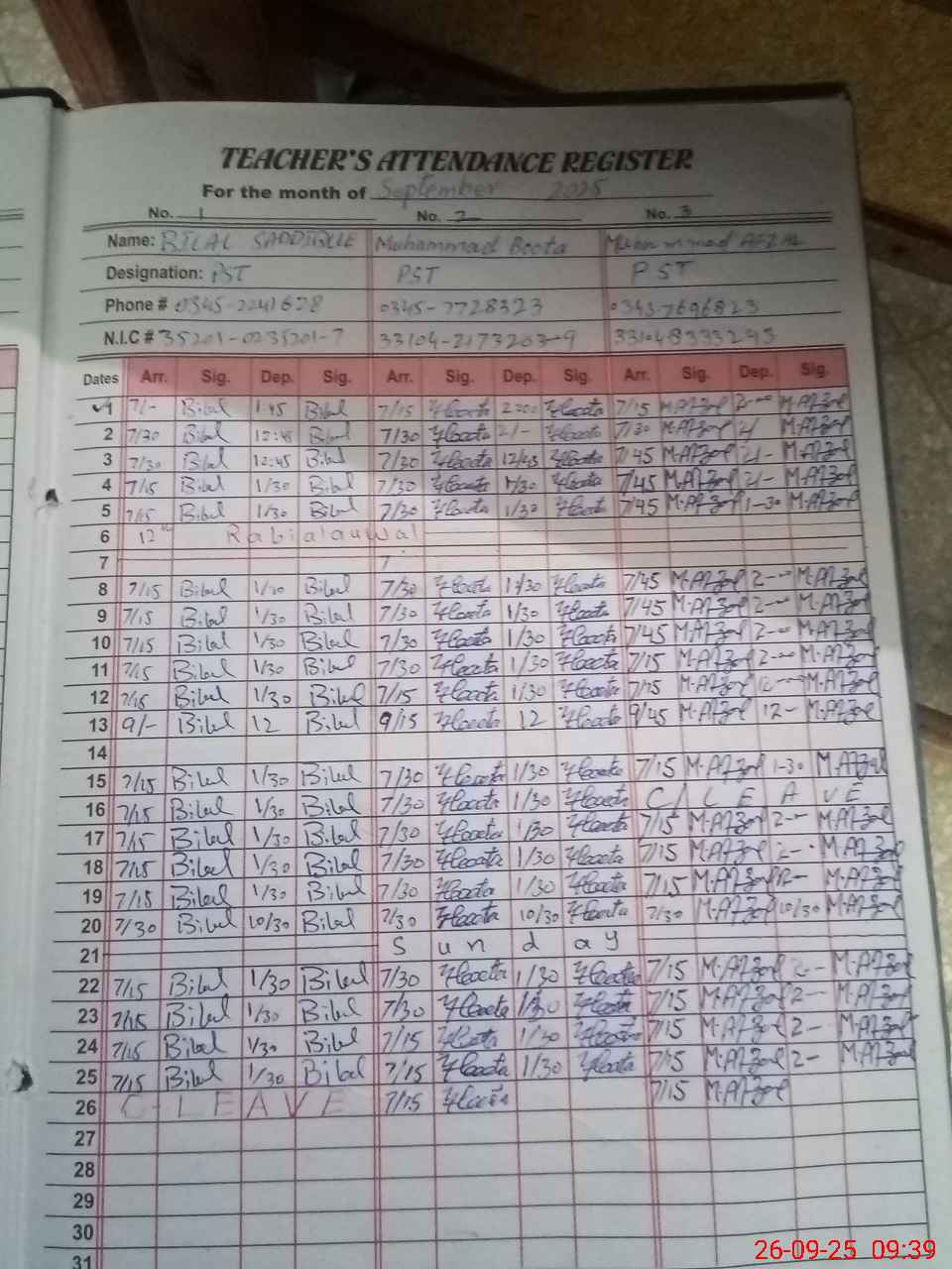 | Name: BI**** SA**** Designation: (School Headmaster's/Headmistress's) ESE Sei Phone/Cell Number: 03**** |