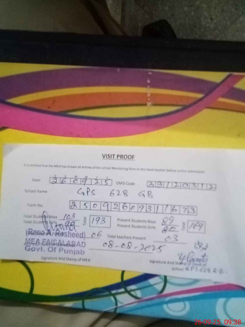| Certified that this School was Inspected by the Undersigned MEA/DMO Today and the Information Stated Above is as Per Record. | |||||