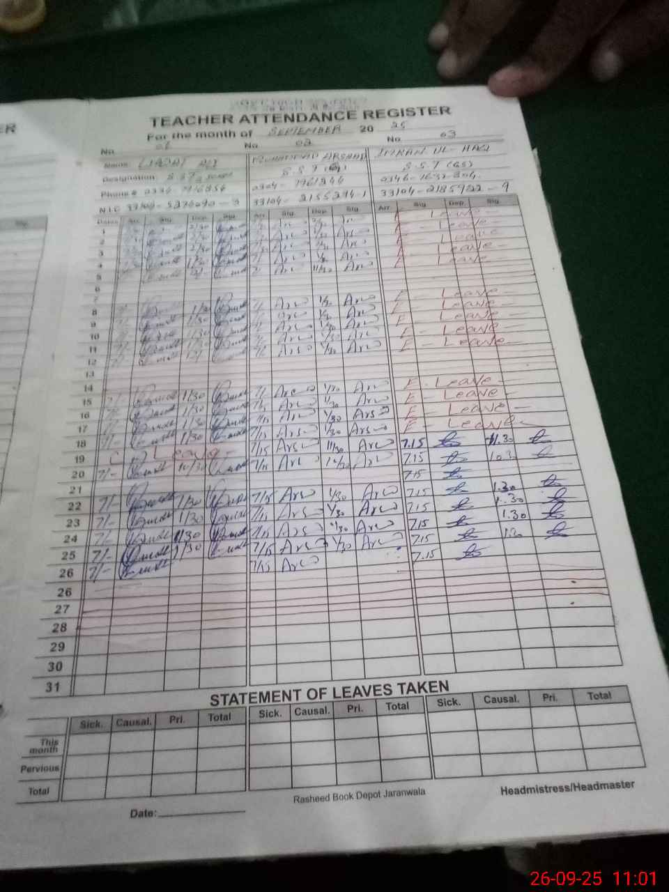 | Name: LI**** AL**** Designation: (School Headmaster's/Headmistress's) SST (G) HM Phone/Cell Number: 03**** |
