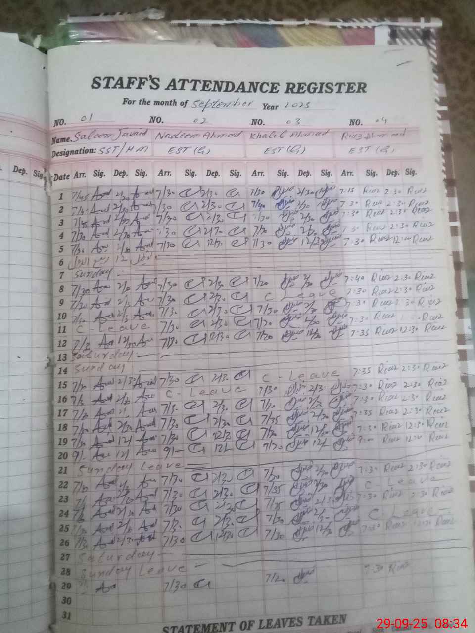 | 35**** | Zu**** | NAIB QASID | Regular | 1 | 0 | 0 | 0 | 0 | 0 | 0 | 0 | 1 | Casual |