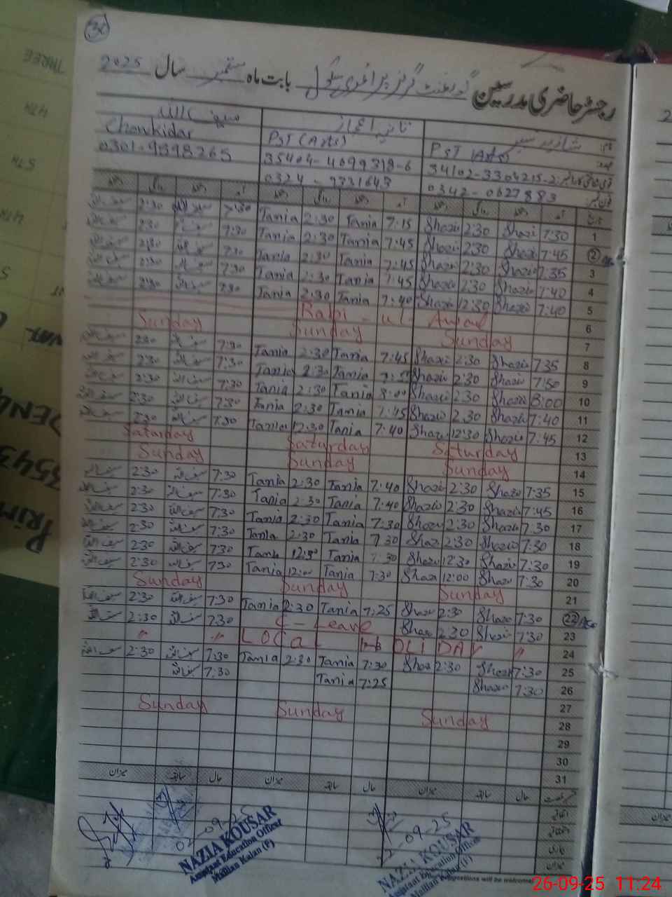 | Name: SH**** Designation: (School Headmaster's/Headmistress's) PST Phone/Cell Number: 03**** |