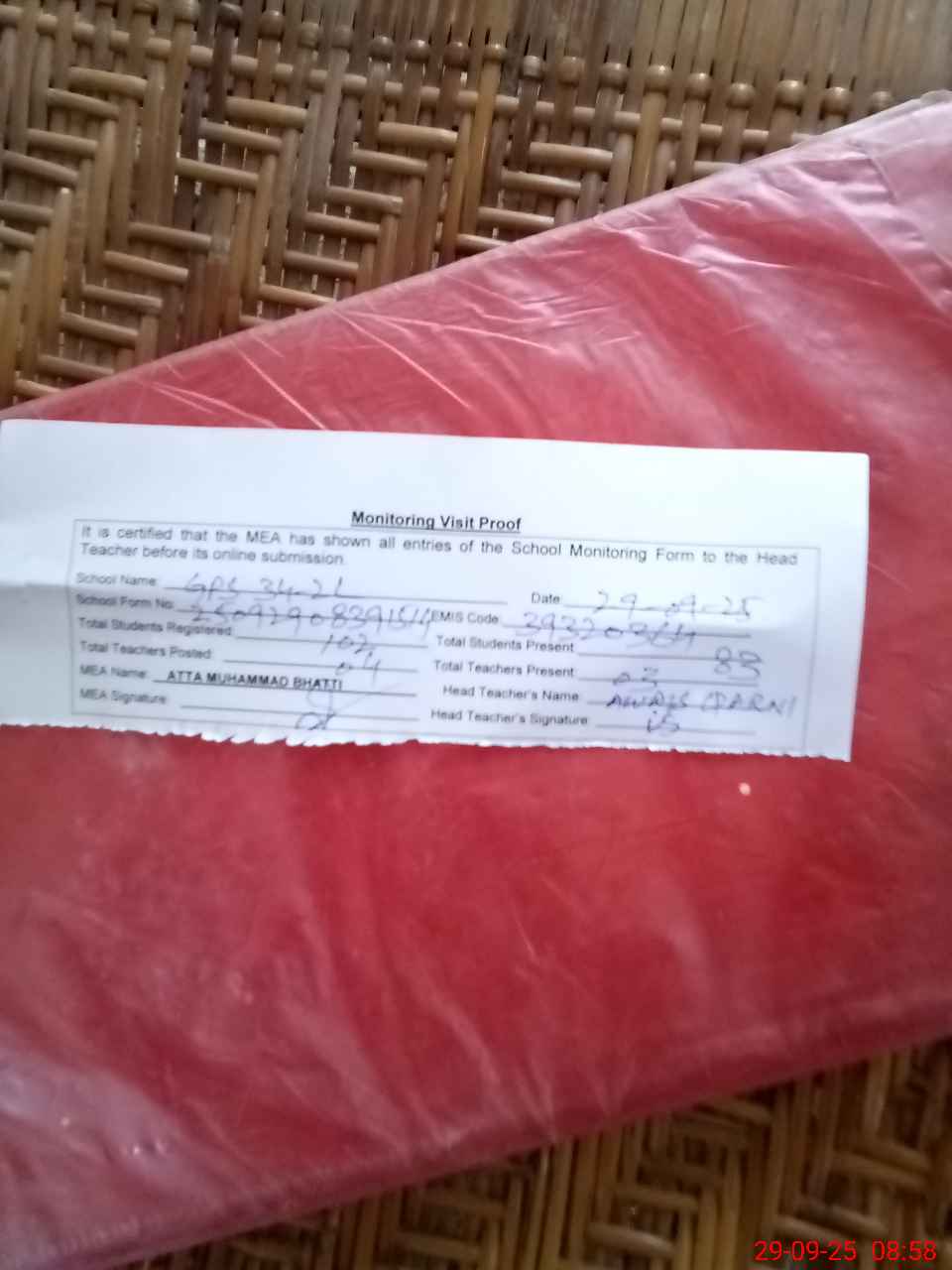 | EMIS Code: 39320364 | Name of School: GPS CHAK 34/2-L | |||