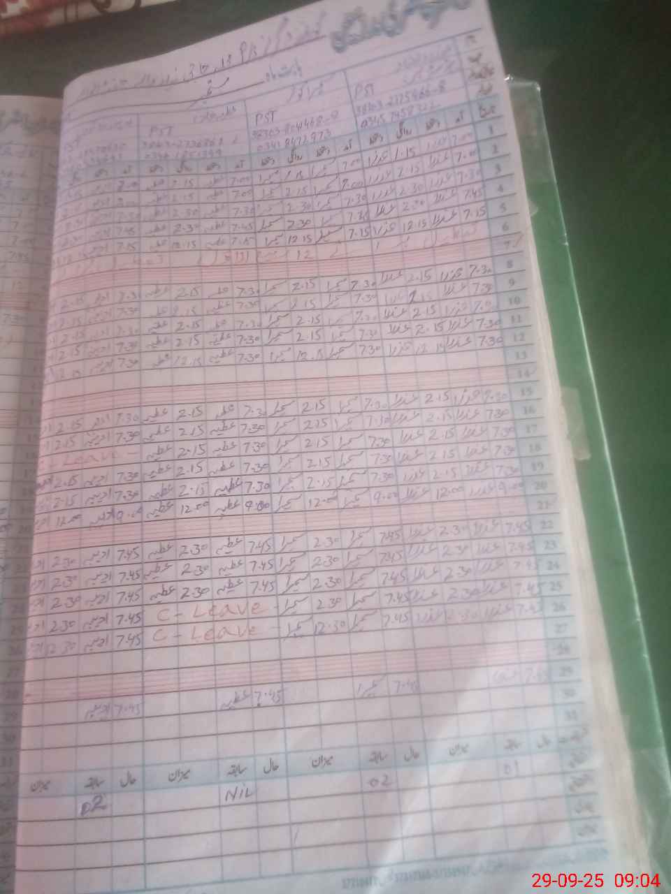 | Leave | Duty | Absent | Maternity | Medical | Ex- Pak |
