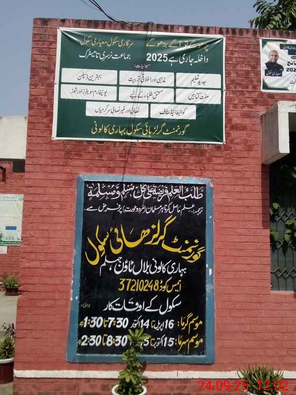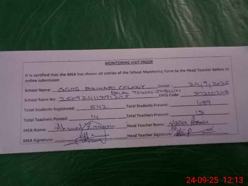 | EMIS Code: 37210248 | Name of School: GGHS BIEHRAI COLONY BILAL TOWN | |||