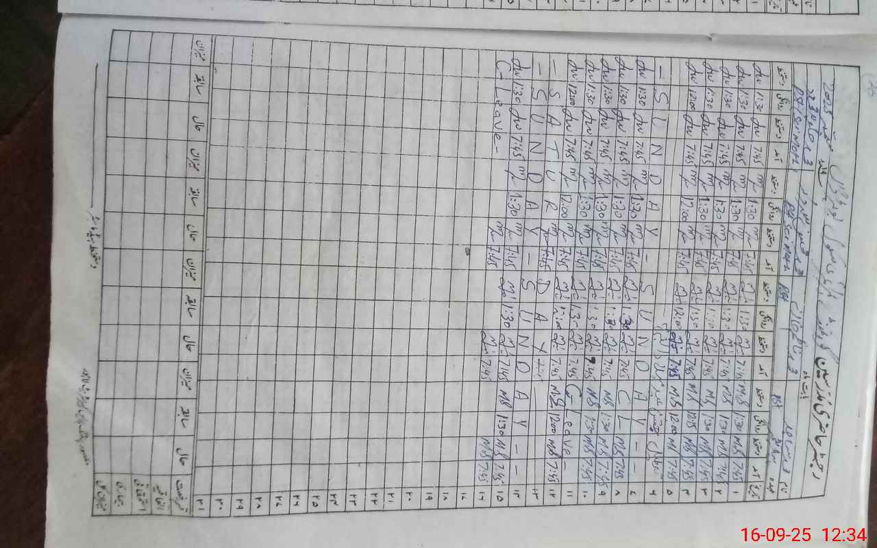| CNIC | Full Name | Designation | R/C | Absence During Last Calender Month |