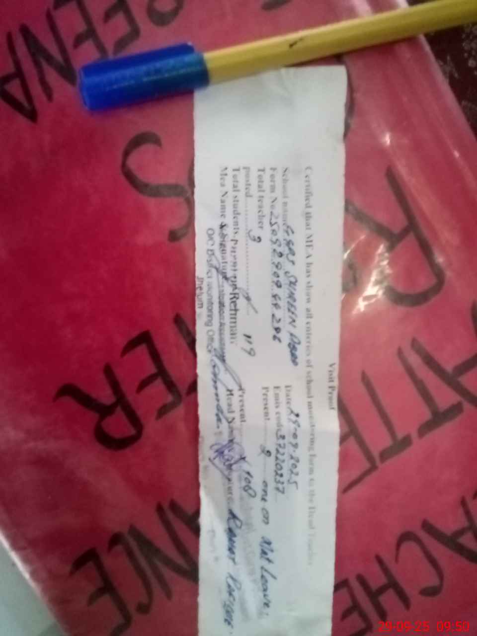 | Attendance Register | Head Teacher | MEA with School | Visit Proof |