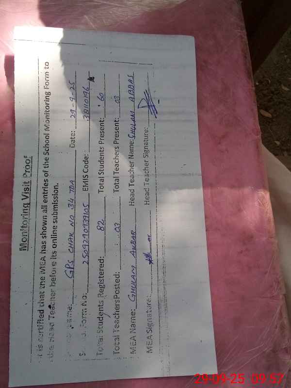 | EMIS Code: 38110196 | Name of School: GPS CHAK NO 34 TDA | |||