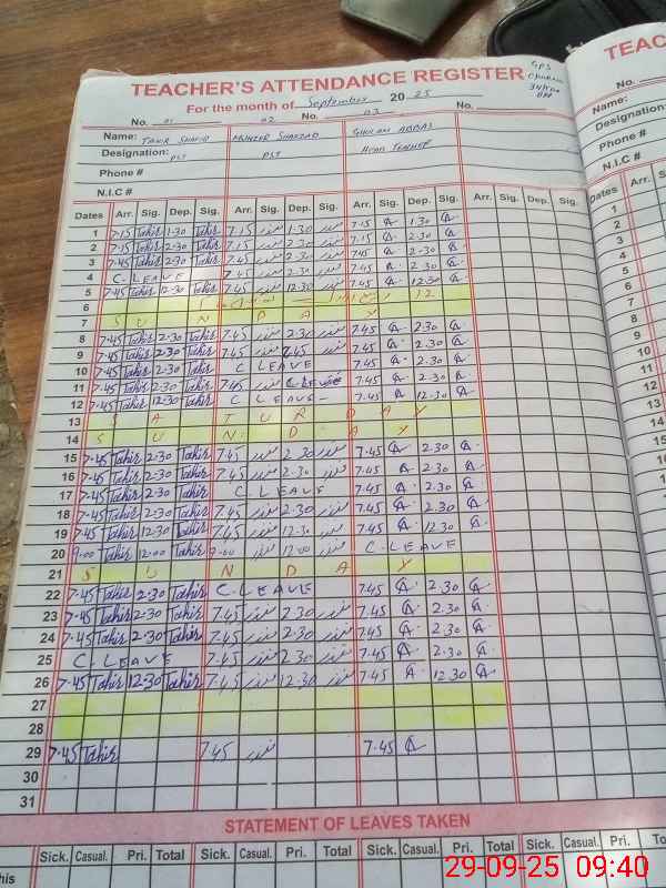 | CNIC | Full Name | Designation | R/C | Absence During Last Calender Month |