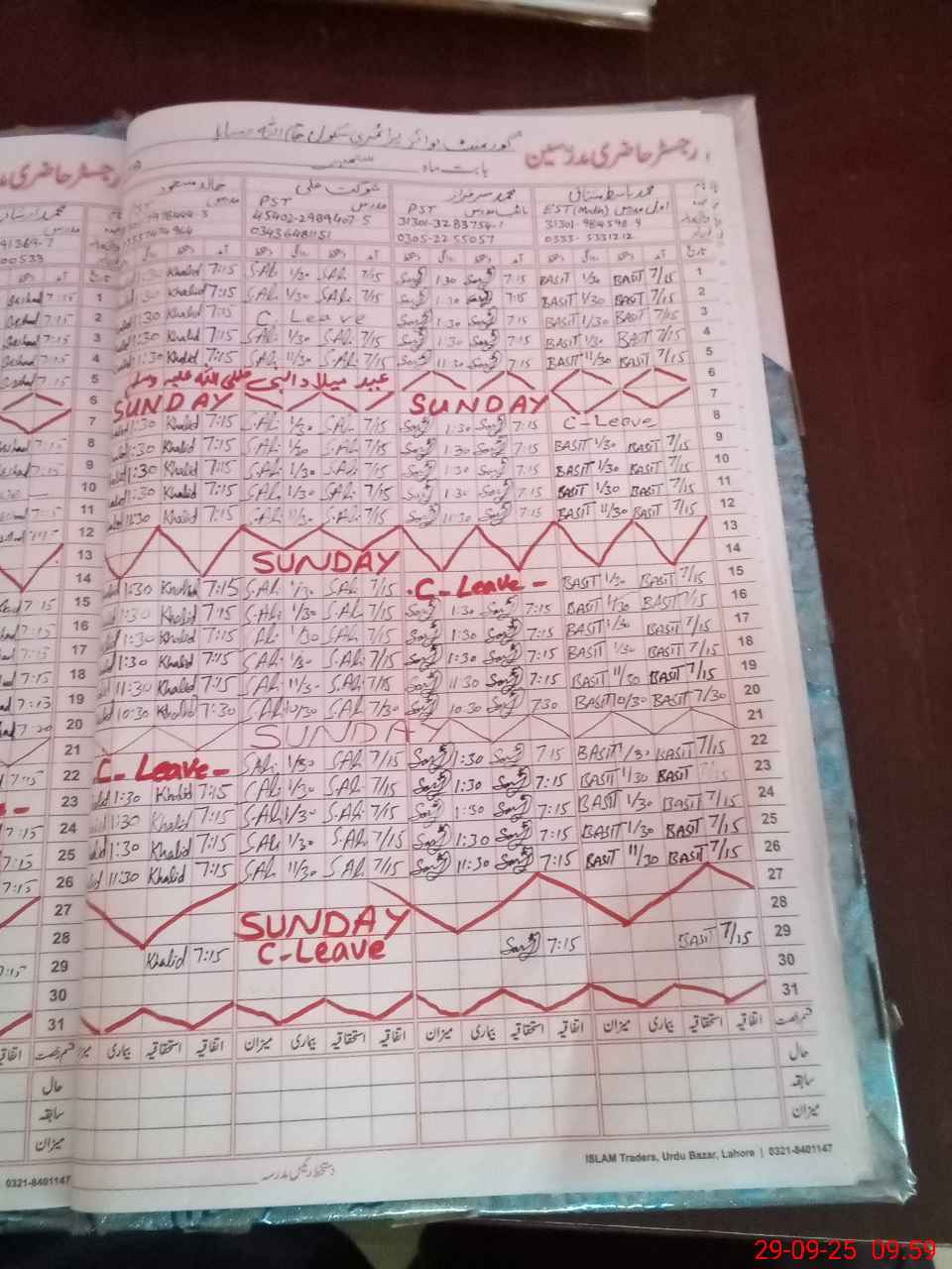 | CNIC | Full Name | Designation | R/C | Absence During Last Calender Month |