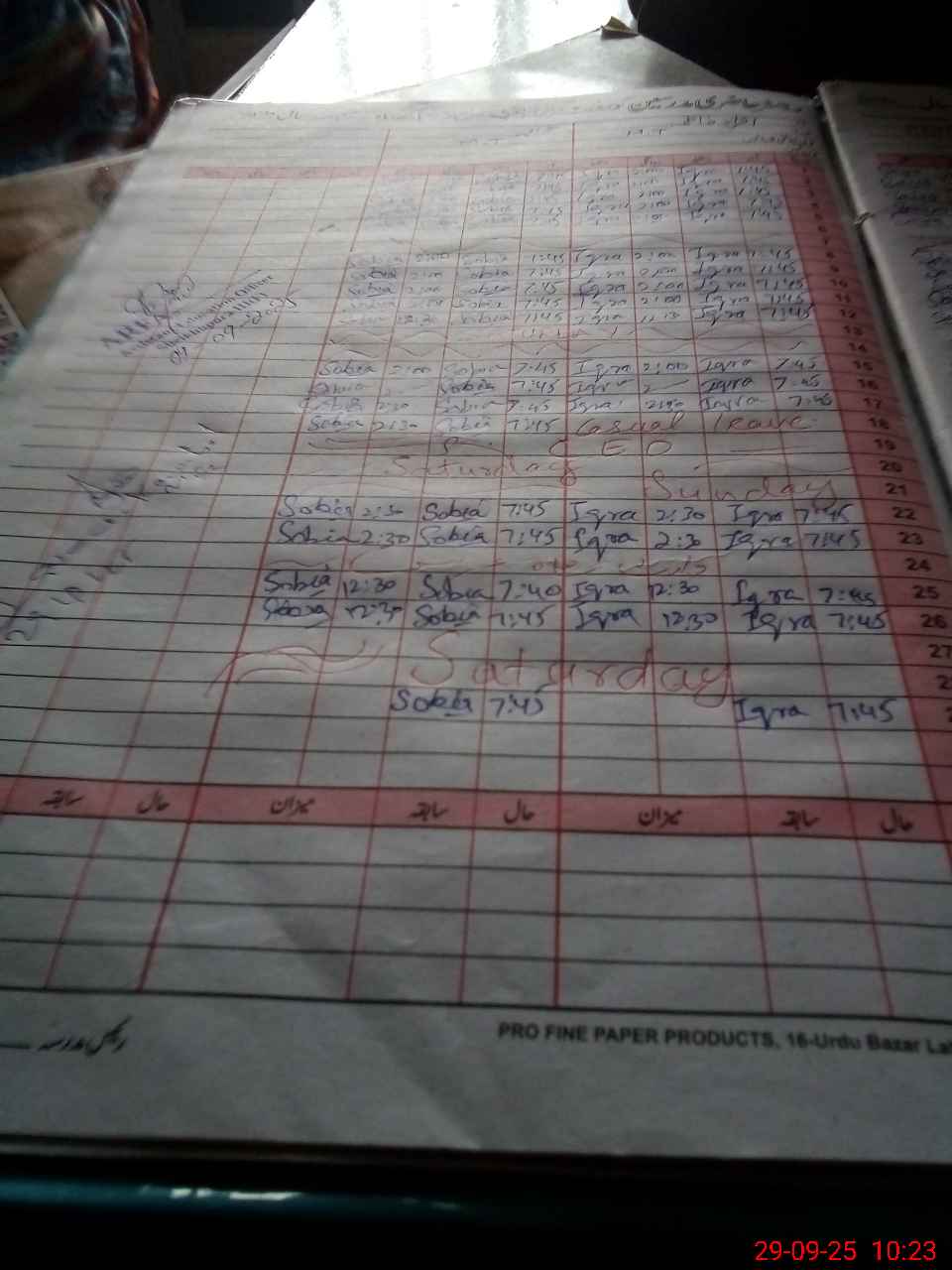 | CNIC | Full Name | Designation | R/C | Absence During Last Calender Month |
