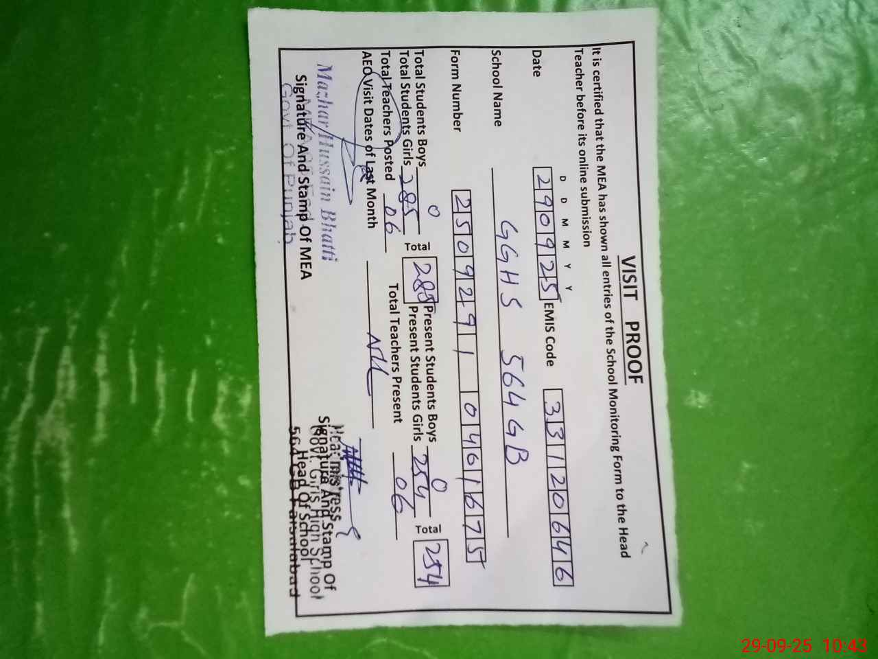 | Certified that this School was Inspected by the Undersigned MEA/DMO Today and the Information Stated Above is as Per Record. | |||||