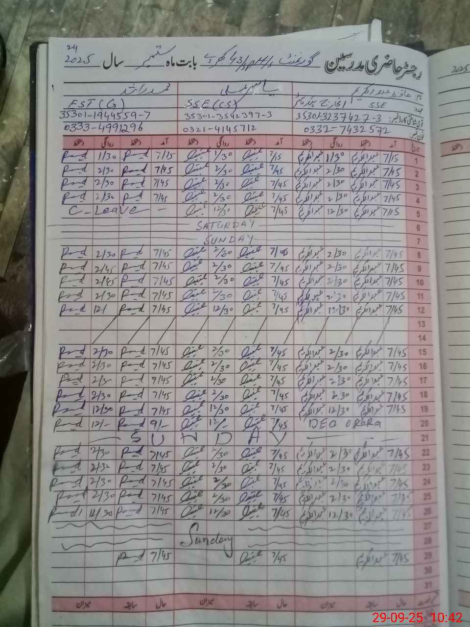 | CNIC | Full Name | Designation | R/C | Absence During Last Calender Month |