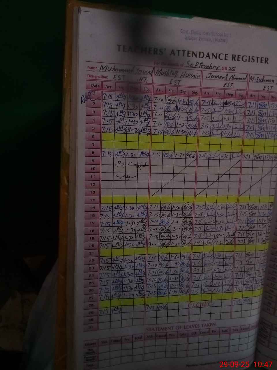 | 36**** | Sa**** Ah**** | CHOWKIDAR | Regular | 0 | 0 | 0 | 0 | 0 | 0 | 0 | 0 | 0 | Casual |