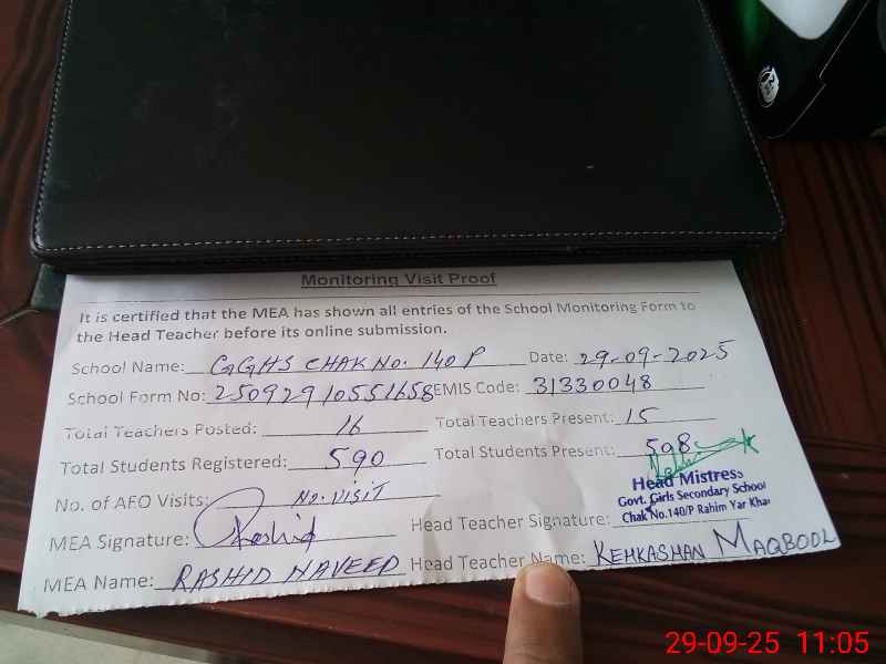 | EMIS Code: 31330048 | Name of School: GGHS CHAK NO. 140/P | |||