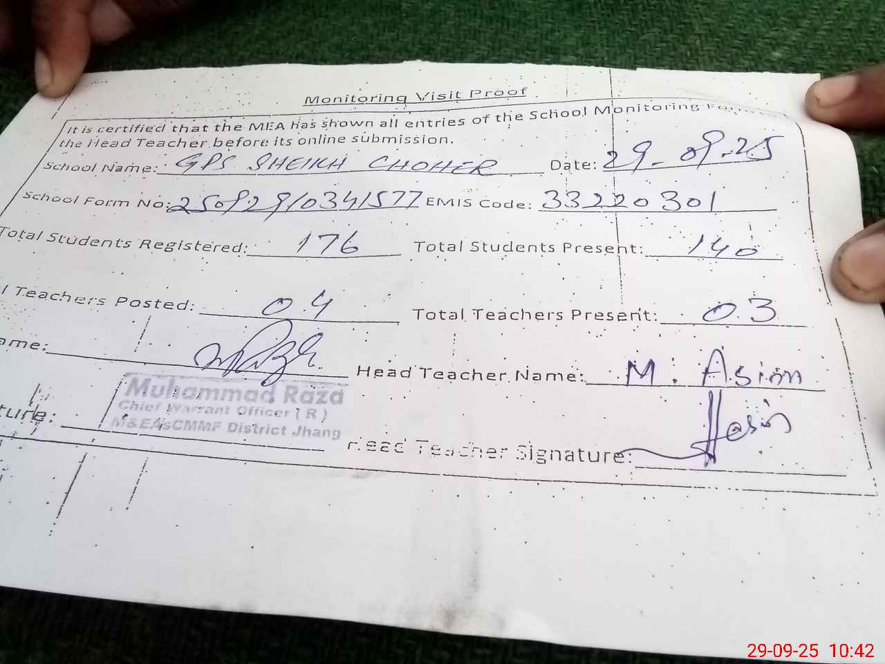 | EMIS Code: 33220301 | Name of School: GPS SHEIKH CHOHAR | |||