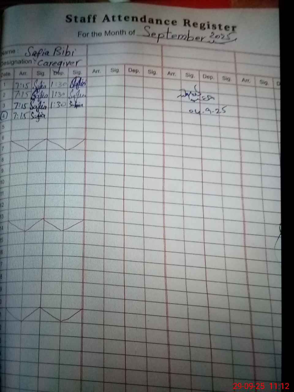 | CNIC | Full Name | Designation | R/C | Absence During Last Calender Month |