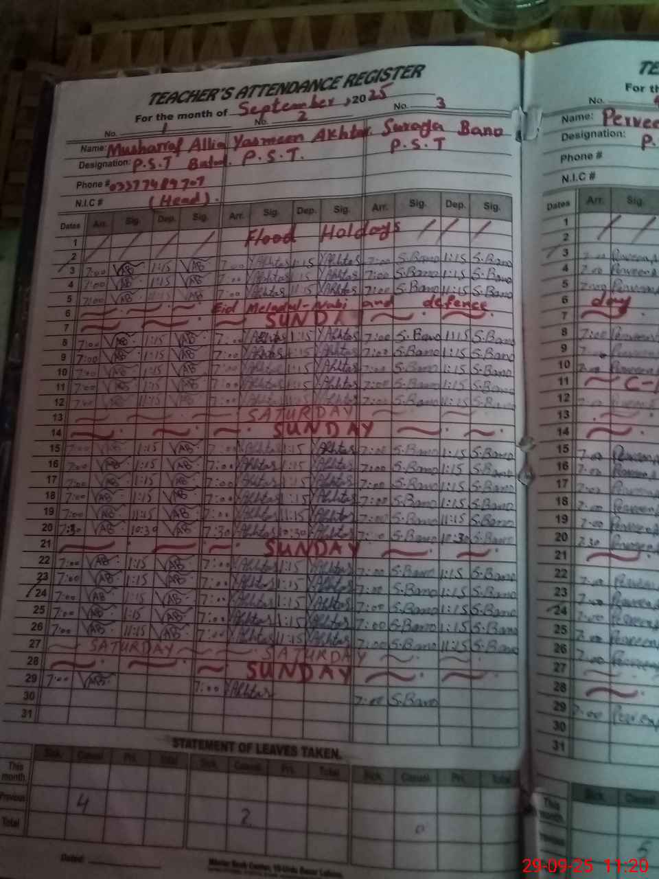 | Name: Mu**** Al**** Ba**** Designation: (School Headmaster's/Headmistress's) PST Phone/Cell Number: 03**** |
