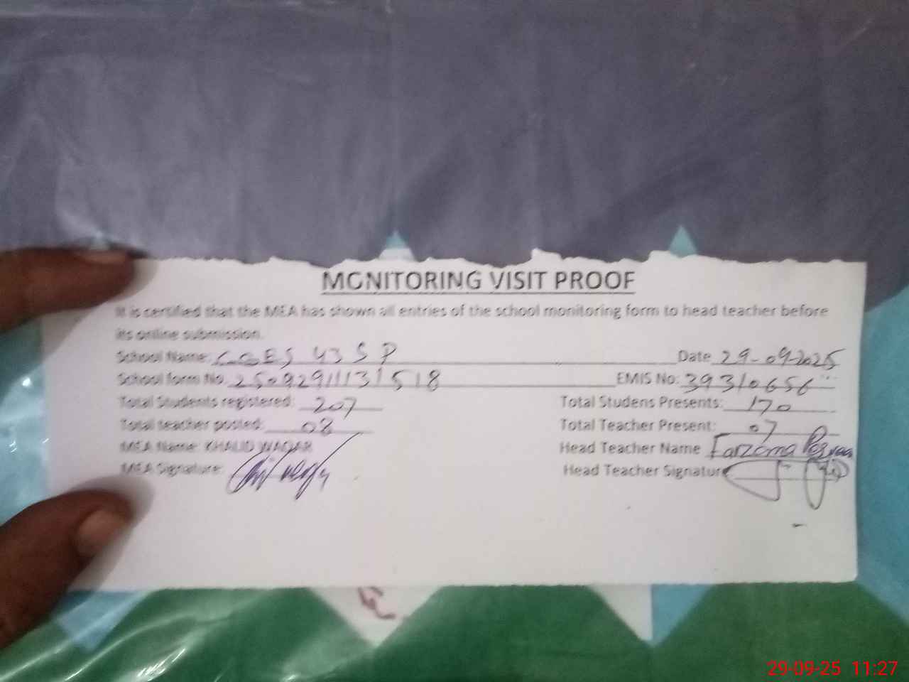 | EMIS Code: 39310656 | Name of School: GGES 43/SP KHURPA | |||