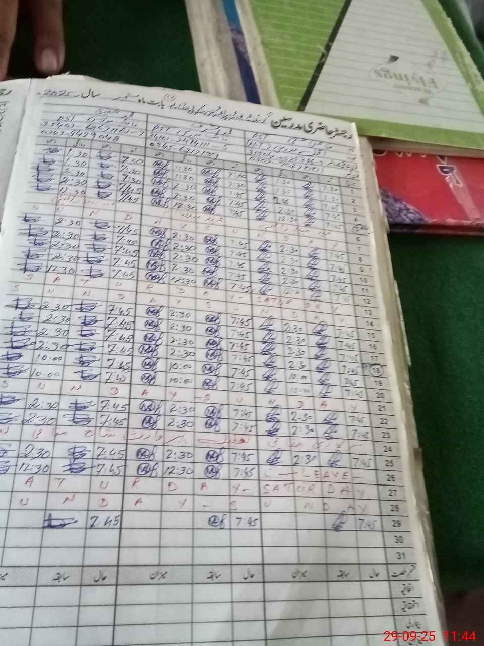 | CNIC | Full Name | Designation | R/C | Absence During Last Calender Month |