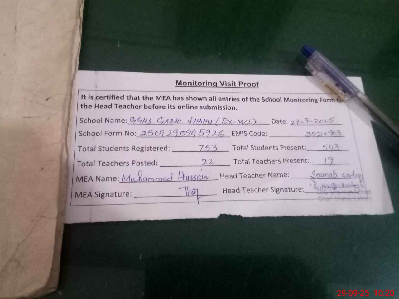 | EMIS Code: 35210903 | Name of School: GGHS GARHI SHAHU (EX-MCL) | |||