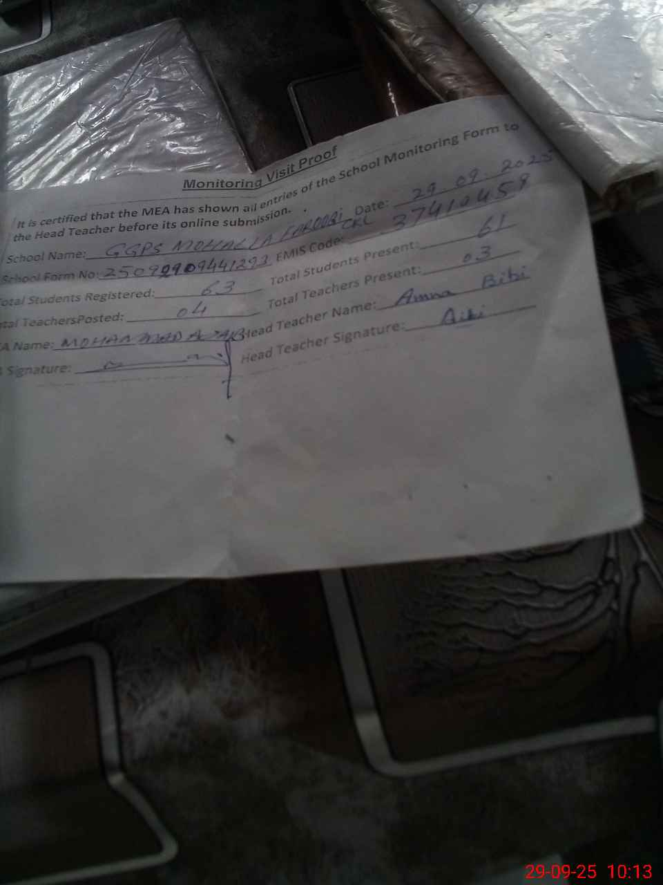 | EMIS Code: 37410459 | Name of School: GGPS MOHALLA FAROOQI CHAKWAL | |||