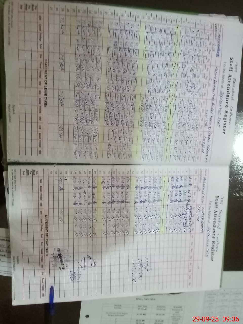 | CNIC | Full Name | Designation | R/C | Absence During Last Calender Month |