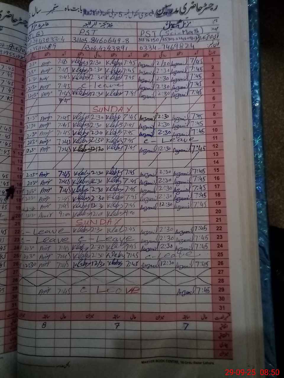 | Name: Sh**** UlHa**** Designation: (School Headmaster's/Headmistress's) SST General Phone/Cell Number: 03**** |