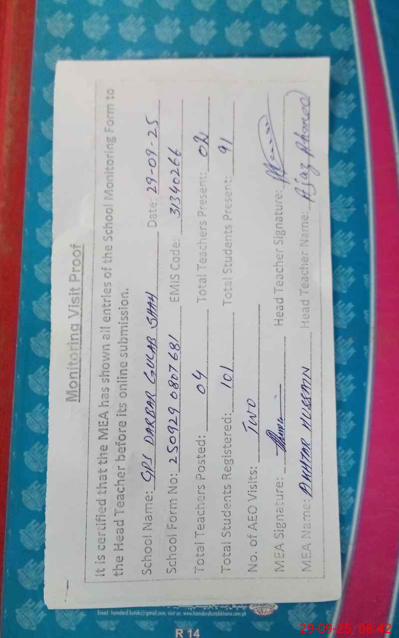 | EMIS Code: 31340266 | Name of School: GPS DARBAR GHULAB SHAH | |||