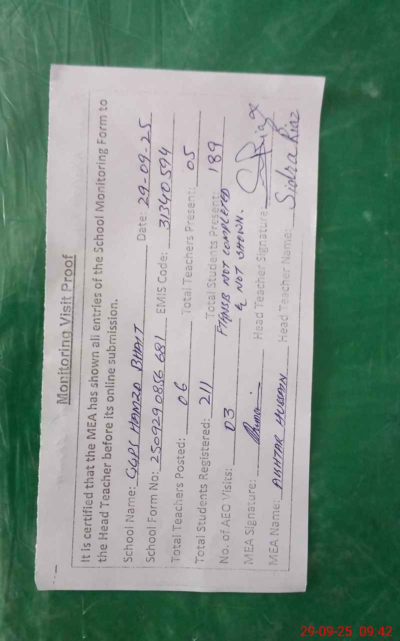 | EMIS Code: 31340594 | Name of School: GGPS HAMZA BHAIT | |||