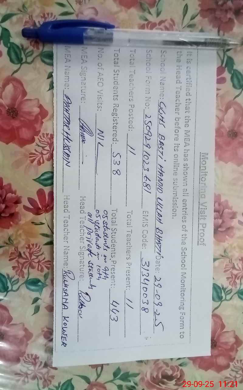 | EMIS Code: 31340038 | Name of School: GGHS BASTI HAMID ULLAH BHATTI | |||