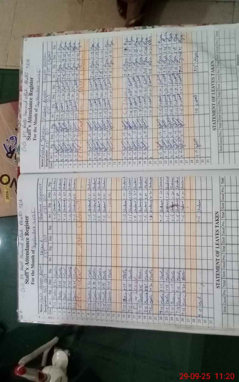 | CNIC | Full Name | Designation | R/C | Absence During Last Calender Month |