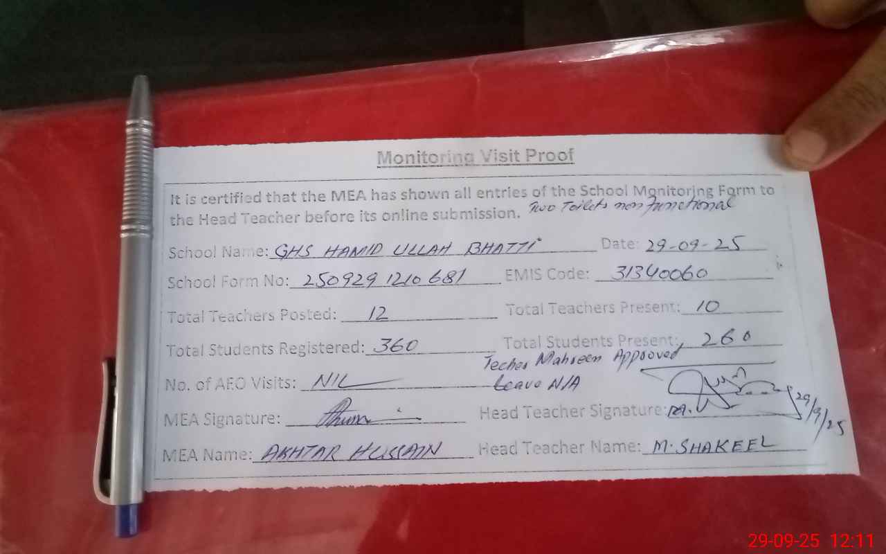 | EMIS Code: 31340060 | Name of School: GHS HAMID ULLAH BHATTI | |||