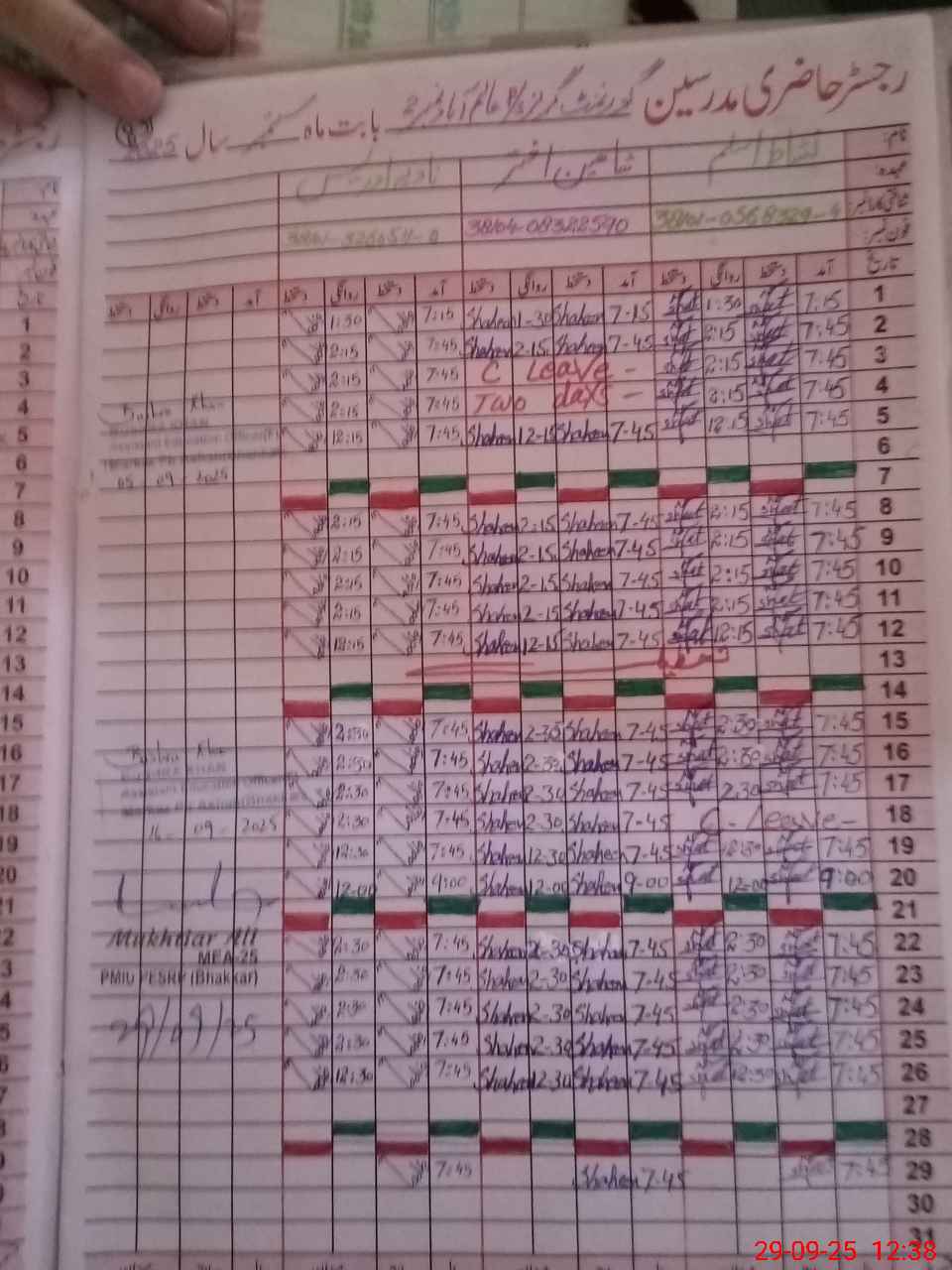 | CNIC | Full Name | Designation | R/C | Absence During Last Calender Month |