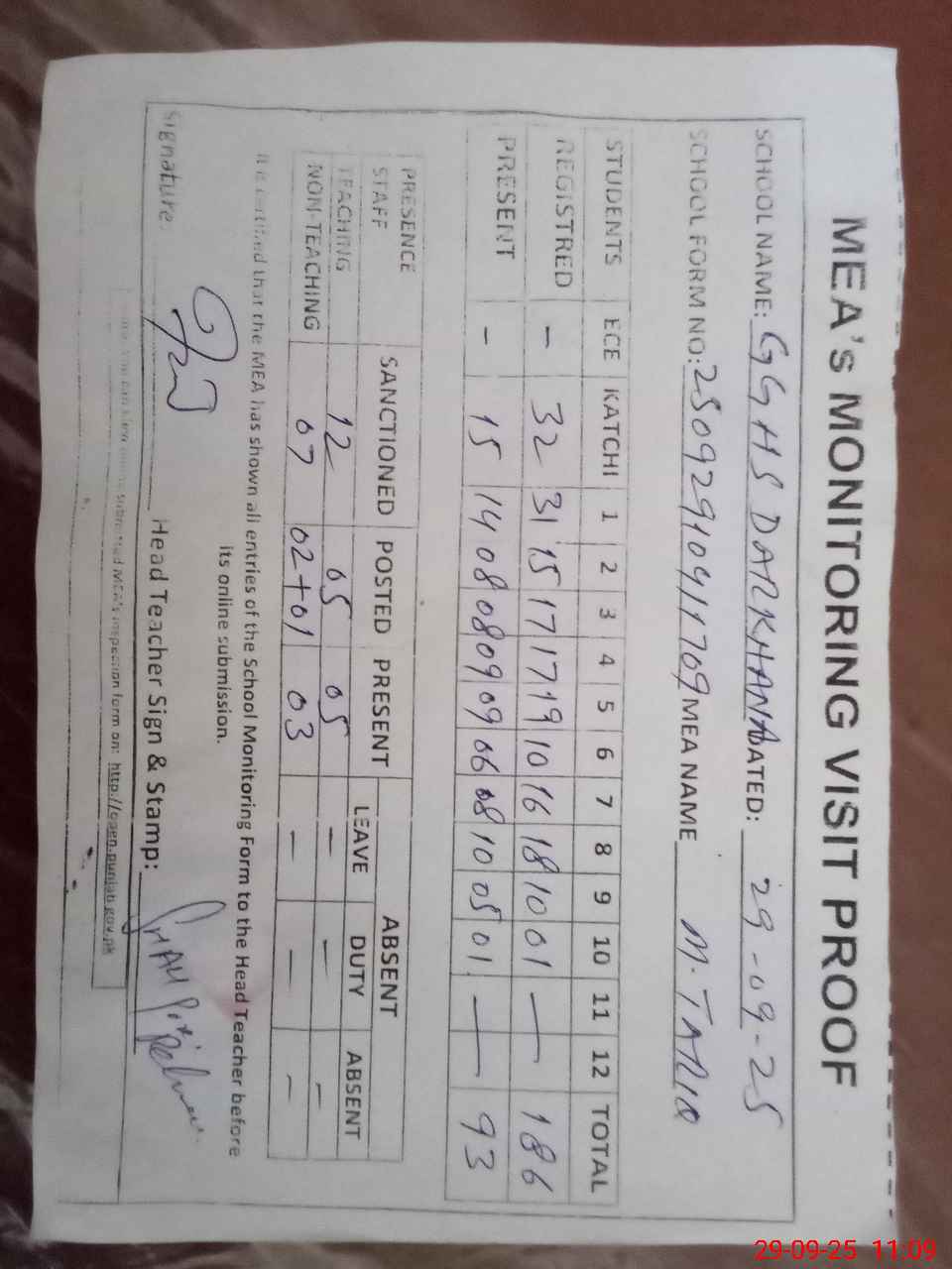| EMIS Code: 36410038 | Name of School: GGHS DARKHANA, ABDUL HAKIM | |||