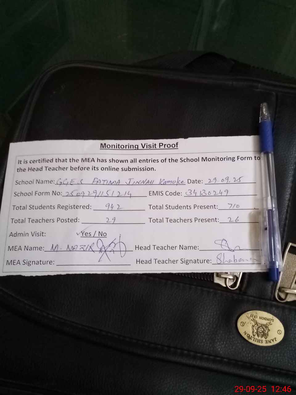 | EMIS Code: 34130249 | Name of School: GGES FATIMA JINNAH KAMOKE | |||