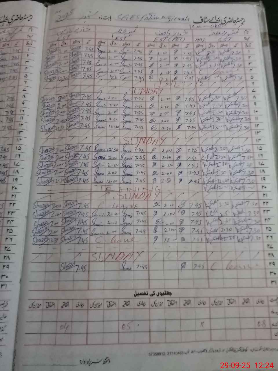 | 34**** | Ki**** Su**** | SST | Regular | 0 | 0 | 0 | 0 | 0 | 0 | 0 | 0 | 0 | Casual |