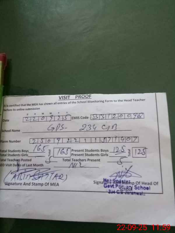 | EMIS Code: 33120098 | Name of School: GPS 234 GB JRN FSD | |||