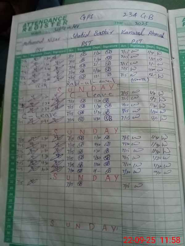 | CNIC | Full Name | Designation | R/C | Absence During Last Calender Month |