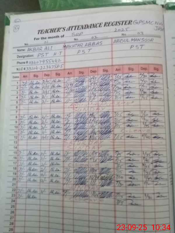 | Name: AK**** AL**** Designation: (School Headmaster's/Headmistress's) PST Phone/Cell Number: 03**** |