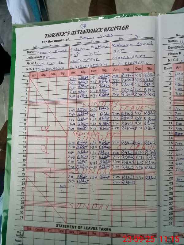 | Name: TA**** AB**** Designation: (School Headmaster's/Headmistress's) PST Phone/Cell Number: 03**** |