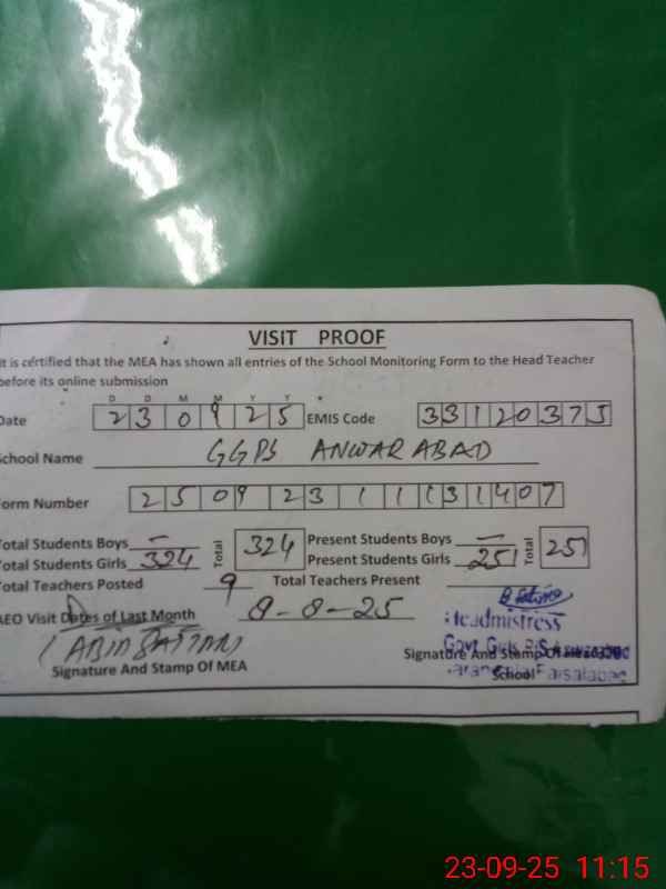 | EMIS Code: 33120375 | Name of School: GGPS ANWAR ABAD JARANWALA | |||
