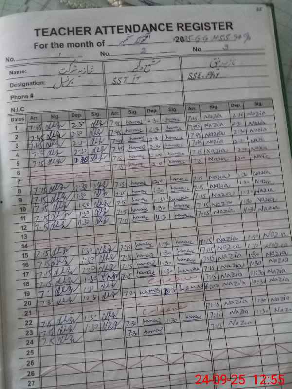 | CNIC | Full Name | Designation | R/C | Absence During Last Calender Month |