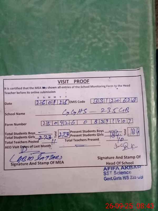 | EMIS Code: 33120628 | Name of School: GGHS 235 GB | |||