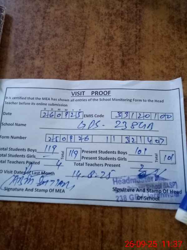 | EMIS Code: 33120100 | Name of School: GPS CHAK 238 GB I | |||