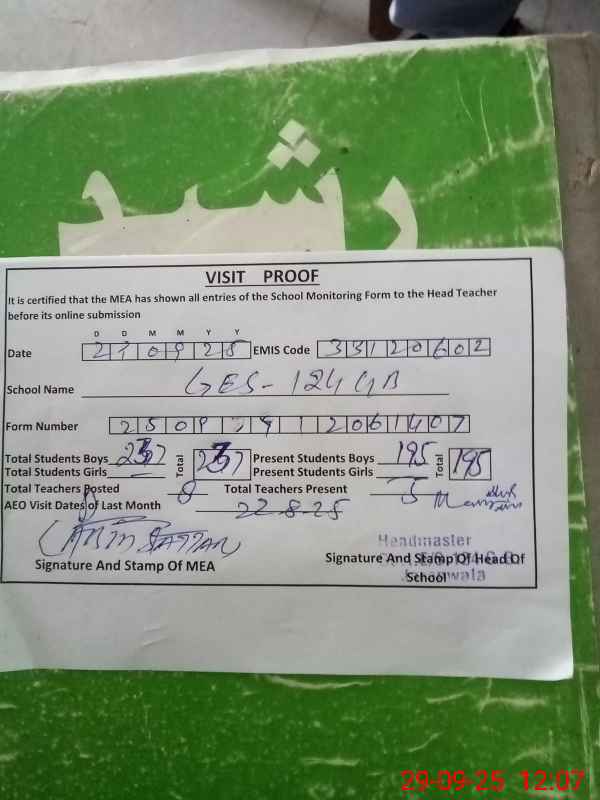 | Attendance Register | Head Teacher | MEA with School | Visit Proof |